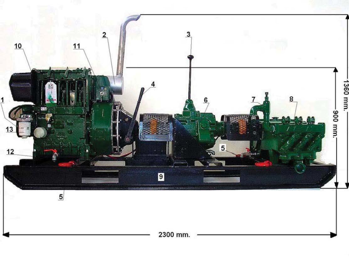 entrada de la bomba de 192, 278, 500 y 833 RPM a 2500 RPM del motor.